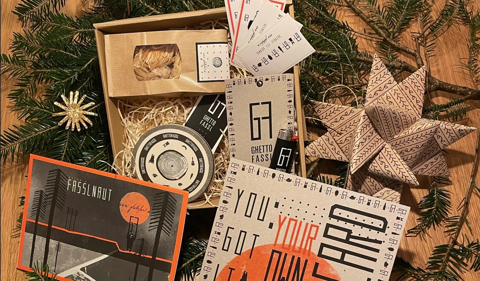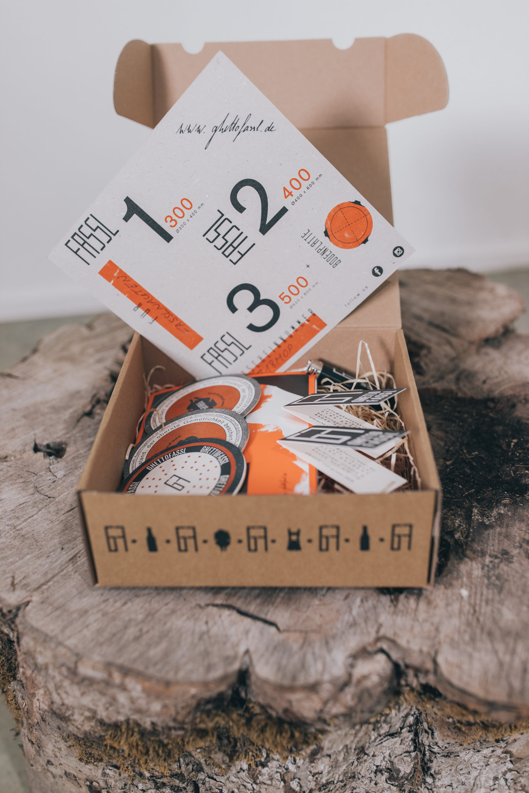 Gutscheingeschenkbox bedruckt im Ghettofassldesign enthält folgende Artikel: