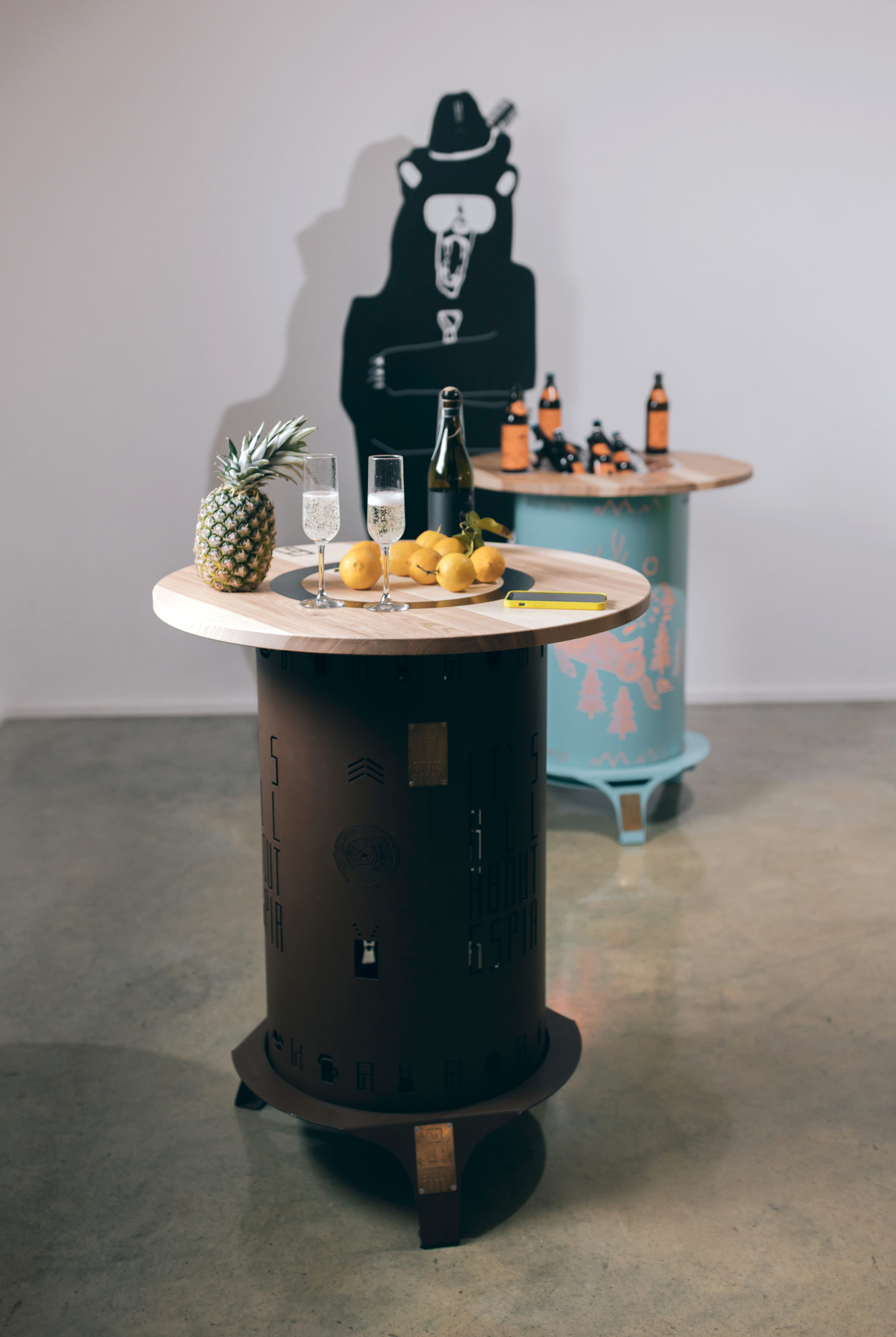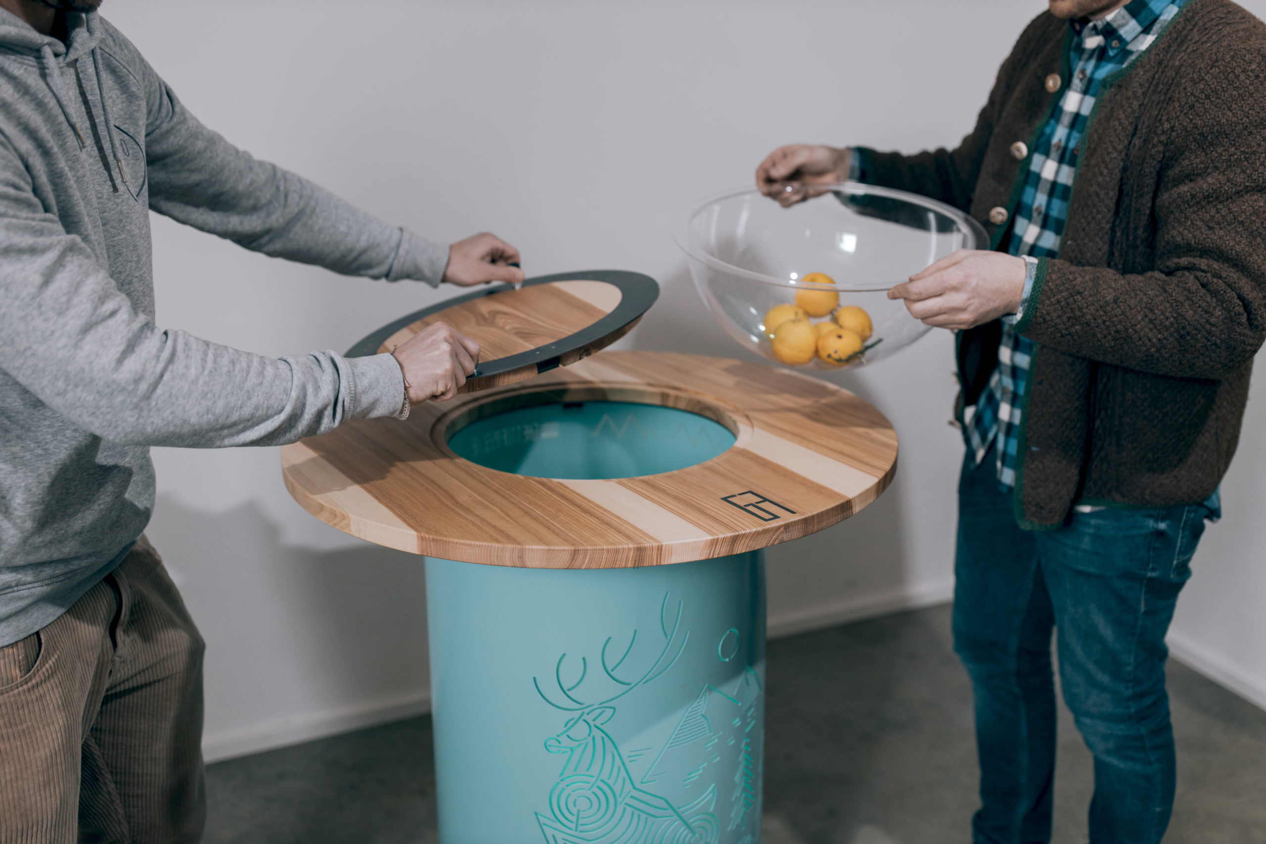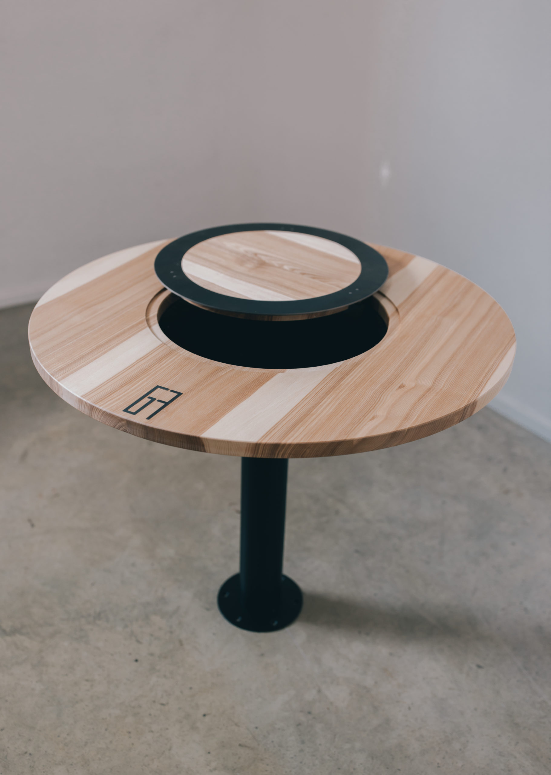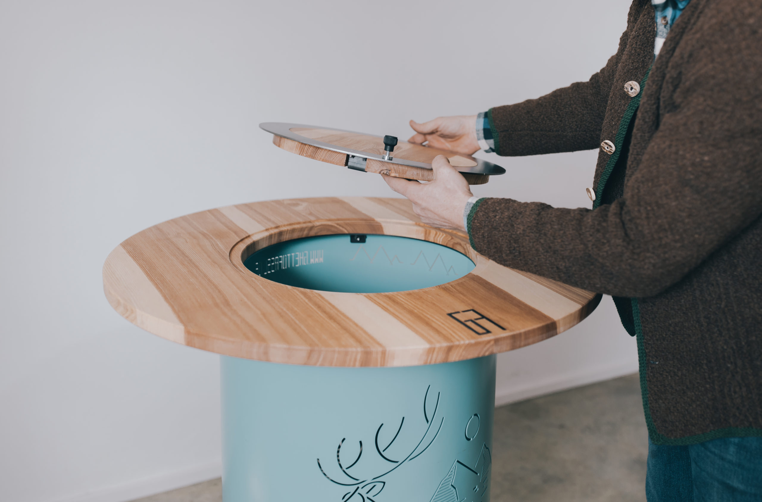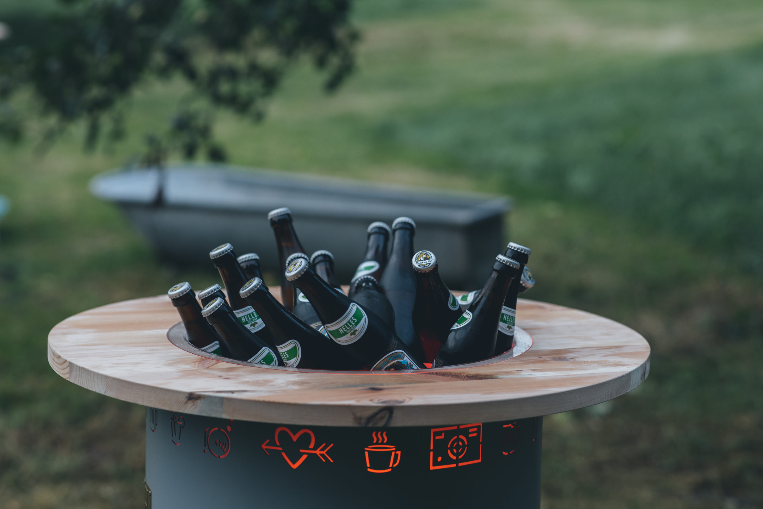 Funktioniere deine Feuertonne im Handumdrehen zum Stehtisch um mit unserem maßgefertigten Holzdeckel!